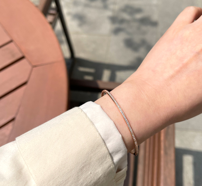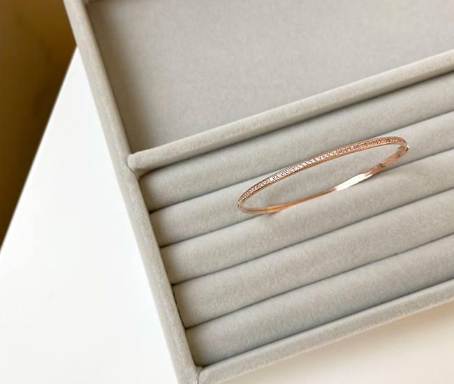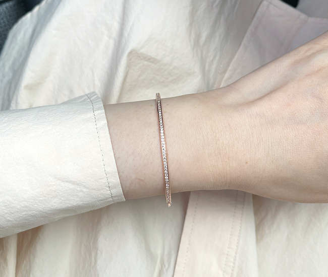 고급스러운 파베셋팅이 돋보이는 뱅글로 심플하지만 고급스러움이 남다른 제품입니다.