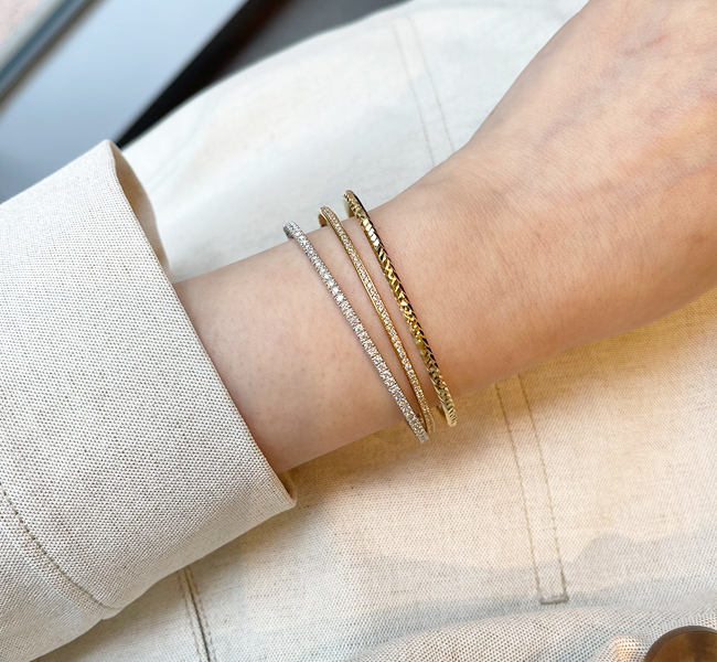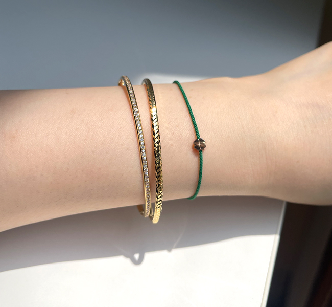 다른 스타일의 뱅글과 레이어드하기 너무 좋고, 단독으로도 고급스러운 제품입니다.