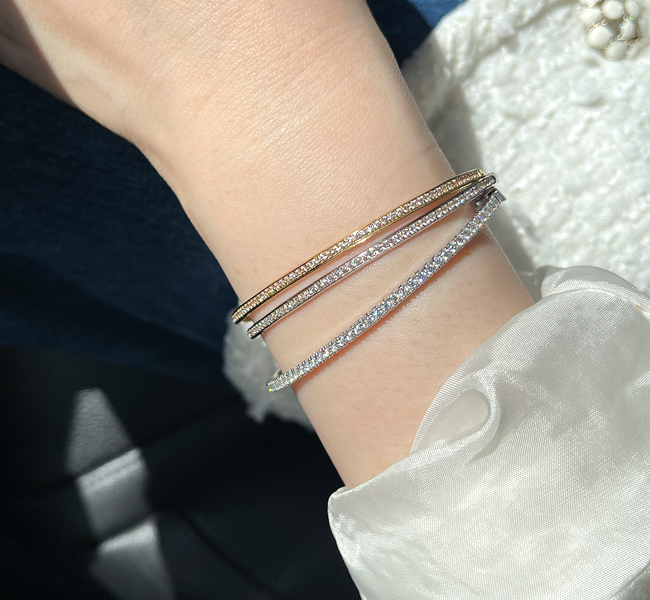 이런 스타일의 뱅글을 테니스팔찌처럼 스톤을 노출하여 셋팅할 경우