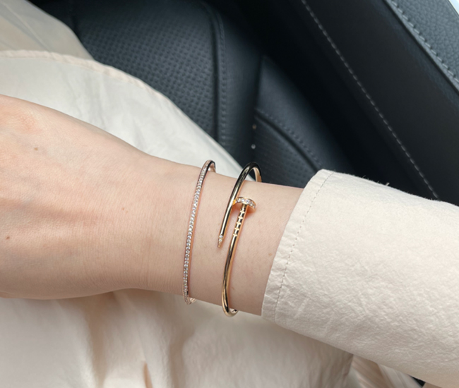 손목이 얇아도 손목뼈가 두드러진 경우 형태가 정해진 뱅글 착용시 튀어나온 뼈 부분에 마찰이 발생할 수 있습니다.